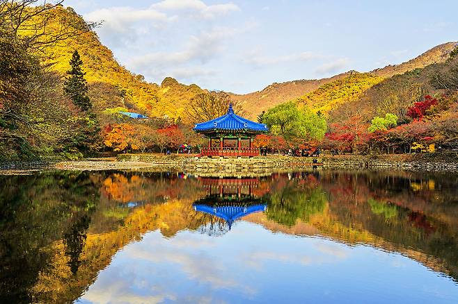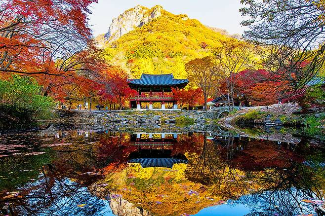 사찰을 감싸는 수령 300년 이상의 단풍나무가 선사하는 붉은 물결은 가히 장관입니다. 특히, 대웅전 앞 연못에 비치는 단풍과 고즈넉한 사찰 풍경은 많은 사진작가들이 찾는 명소입니다.