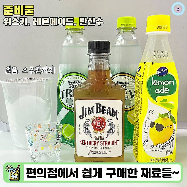 그래서 며칠 전에 SNS에서 보고 캡처해 뒀던 하이볼 레시피를 따라해보자 싶더라구요. 재료도 전부 편의점에서 간편하게 구할 수 있는 것들이라 망설일 이유가 없었답니다ㅋ.ㅋ