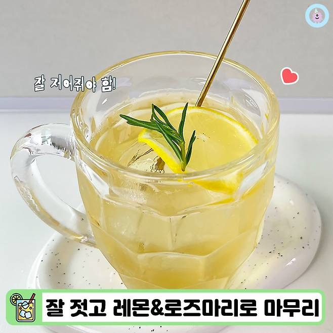 추가로 감성감성한 시간을 위해 비주얼까지 챙기고 싶으시다면 레몬 슬라이스와 로즈마리or애플민트도 준비하시는 것을 추천 드려요! 특히 레몬 슬라이스를 넣으면 마지막까지 상큼한 맛이 감돈다고 하더라구요.