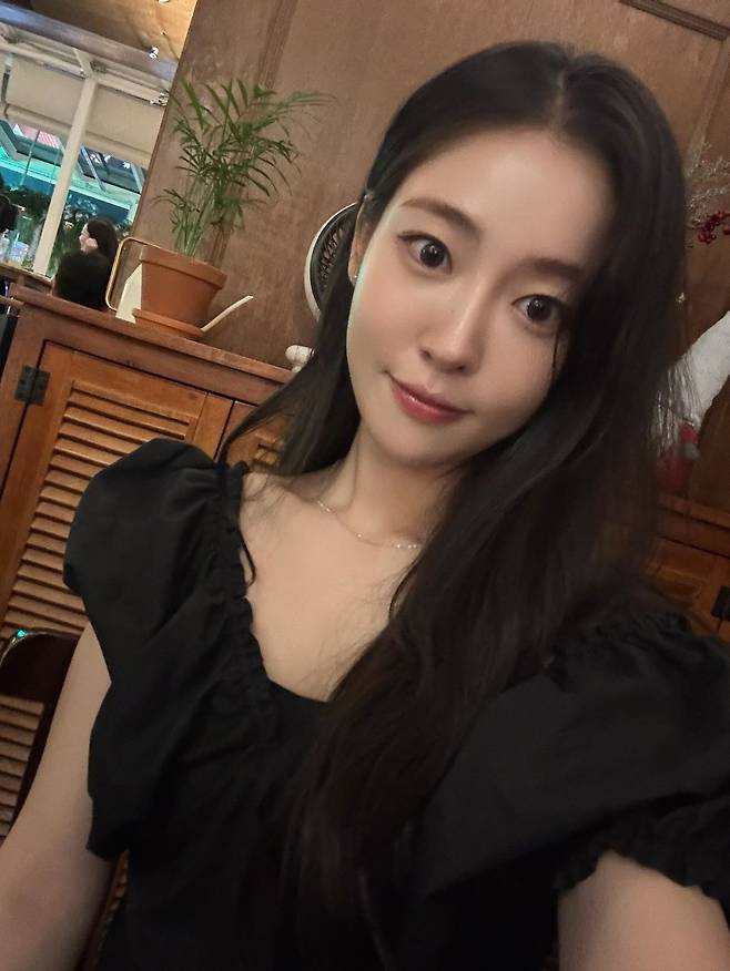 이번 착장의 중심은 블랙 퍼프 블라우스다. 어깨에 볼륨을 더한 퍼프 디테일이 상체 라인을 여성스럽게 강조했고, 밑단의 미세한 프릴이 허리선을 따라 흐르며 자연스러운 곡선을 살려냈다. 스퀘어 넥라인은 목선을 안정적으로 정돈하면서 쇄골 라인을 은근하게 드러내, 시선을 부드럽게 위로 이끈다.