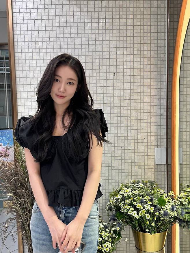 화사한 꽃다발이 놓인 실내 공간에서 송지우가 전한 근황은 모던하면서도 산뜻한 무드를 담고 있다. 작은 타일이 정돈된 배경은 은은한 패턴감을 더해주었고, 여기에 블랙 톤의 블라우스와 연청 데님이 강약을 이루며 전체적인 스타일을 완성했다.