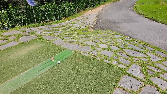 티 박스 주변의 잔디 상태는 좋지 않았습니다. 대부분의 티 박스에는 매트가 깔려 있긴 하지만 에이밍에 큰 불편함을 느끼지는 못했습니다.