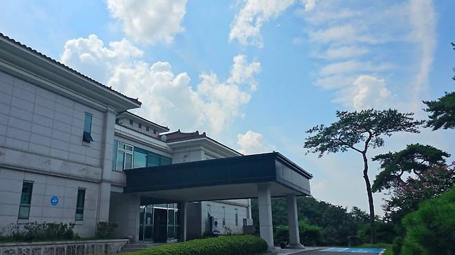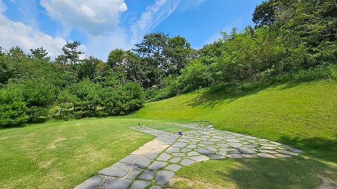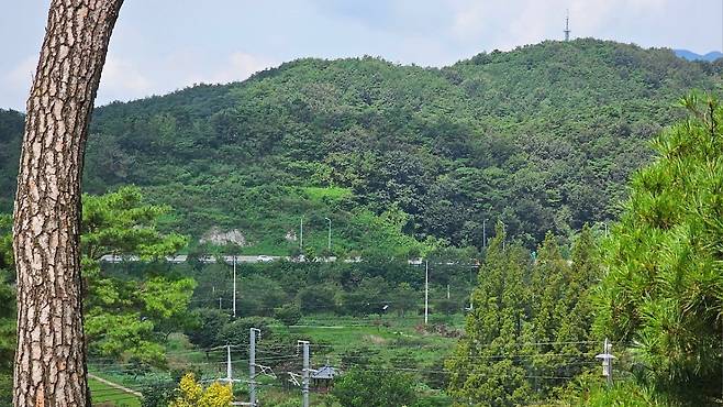 맑은 하늘과 주변 산과 나무들이 잘 어우러져 아름다운 풍경이었어요.