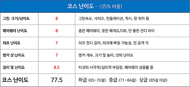 페어웨이 샷의 난이도는 전반적으로 높지 않다 생각됩니다.