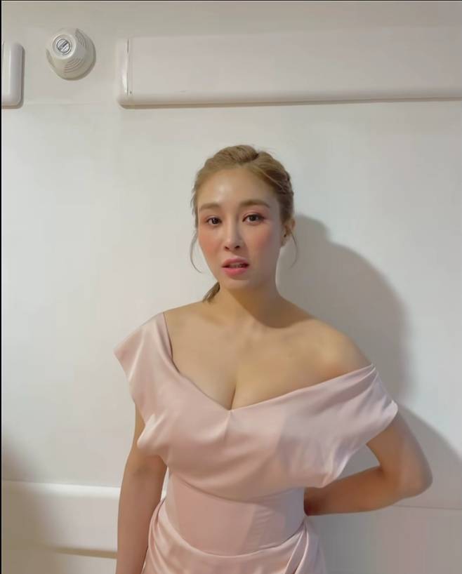 드레스의 원숄더 디자인은 우아하면서도 섬세한 매력을 돋보이게 했고, 부드러운 드레이핑 디테일은 옥주현의 슬림한 몸매를 더욱 돋보이게 만들었습니다.