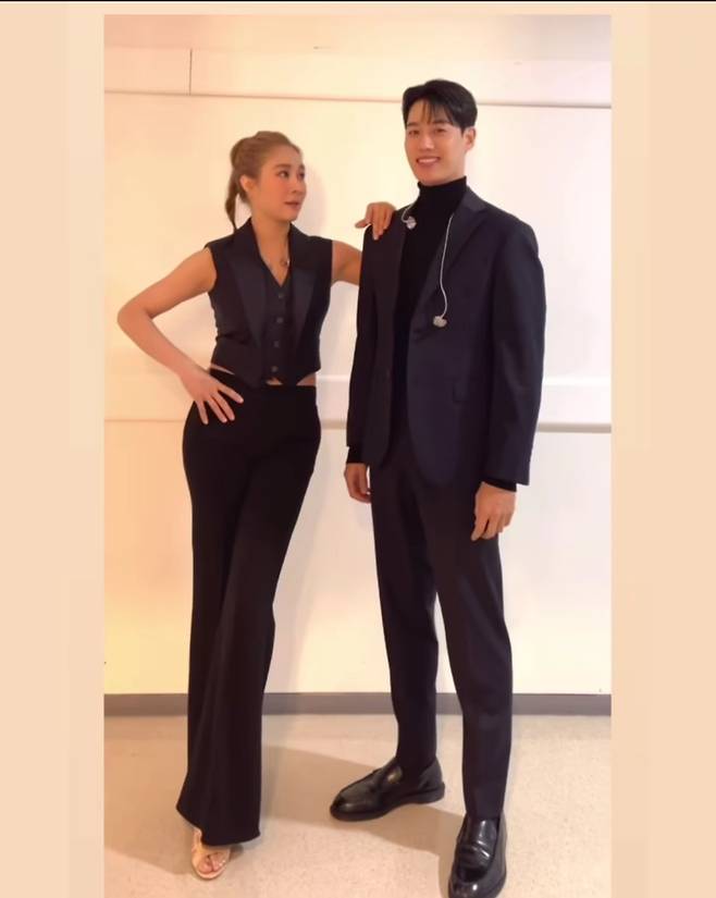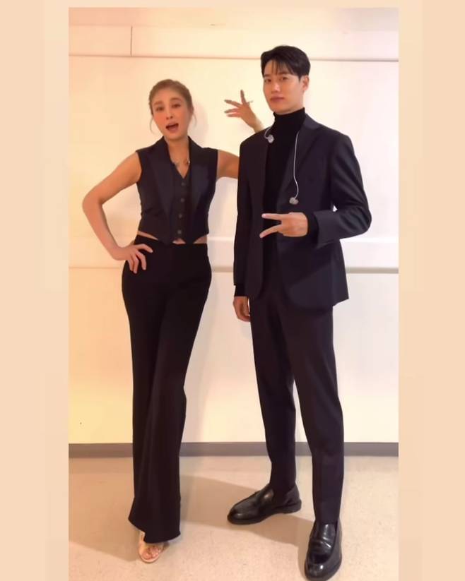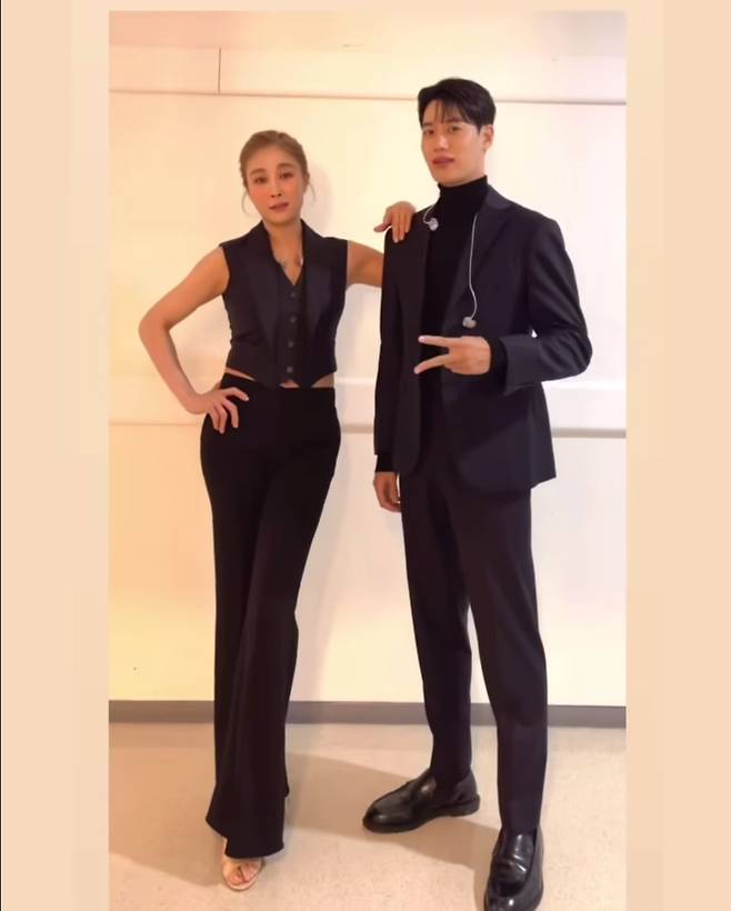 또 다른 사진에서 옥주현은 블랙 슬리브리스 크롭 베스트와 와이드 팬츠로 시크하면서도 세련된 매력을 발산했습니다.