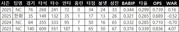 수비 범위는 좁아졌고, 지명타자 슬롯은 이미 강백호와 페라자가 점령한 한화에서 손아섭의 존재는 '계륵' 그 자체다.