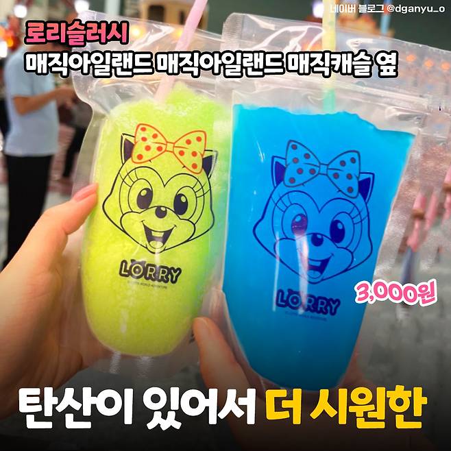한 겨울이라도 놀이동산을 즐기다 보면 목이 탈 때가 반드시 오잖아요. 귀여운 색상들 때문에 놀이동산에 왔다는 기분이 더 날 것 같아서 이건 필수 메뉴로 추천드려도 좋을 것 같아요~♡
