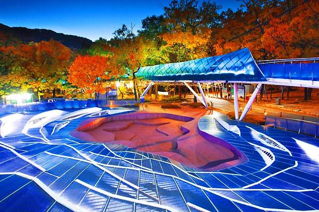 빛의 다리는 공원 내의 하천을 가로지르는 다리로, LED 조명이 설치되어 밤이 되면 환상적인 분위기를 만들어냅니다.