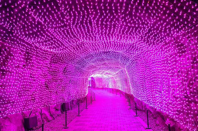 동굴 내부는 낮에도 독특한 매력을 자랑하지만, 겨울밤에는 곳곳에 설치된 LED 조명과 라이트 아트 작품들이 동굴을 더욱 신비롭게 만들어줍니다.