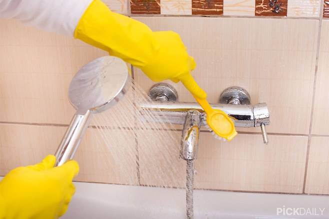 화장실 바닥과 세면대, 변기 등에 따뜻한 물을 뿌려주면 묵은 때가 불어나고 청소가 쉬워진다. 특히 찌든 때와 물때가 잘 불려져 세제를 사용할 때 더 효과적으로 오염을 제거할 수 있다. 뜨거운 물 대신 미지근한 물도 괜찮다.