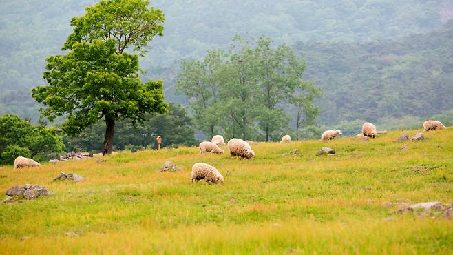 화순에 위치한 양떼목장은 안양산이 둘러싼 초원 위에 유럽 스타일의 건물들이 조화롭게 어우러져 있어, 마치 알프스 산맥에 온 것 같은 느낌을 줍니다.