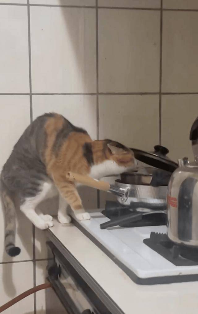 사료통 열기 외에도 이 고양이는 다른 특별 기술도 가지고 있다고 합니다. 주인이 끓인 국을 가스레인지 위에 올려놓고 잠깐 국자를 가지러 간 사이에, 소화가 냄비 뚜껑을 열려고 시도했다는 이야기는 정말 간담이 서늘해집니다.