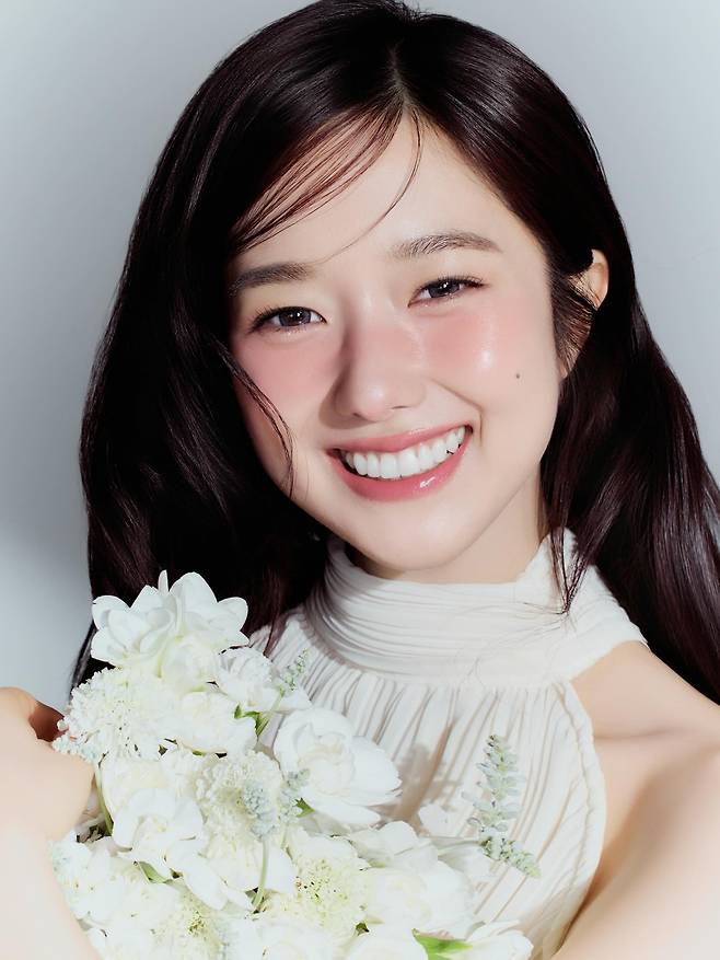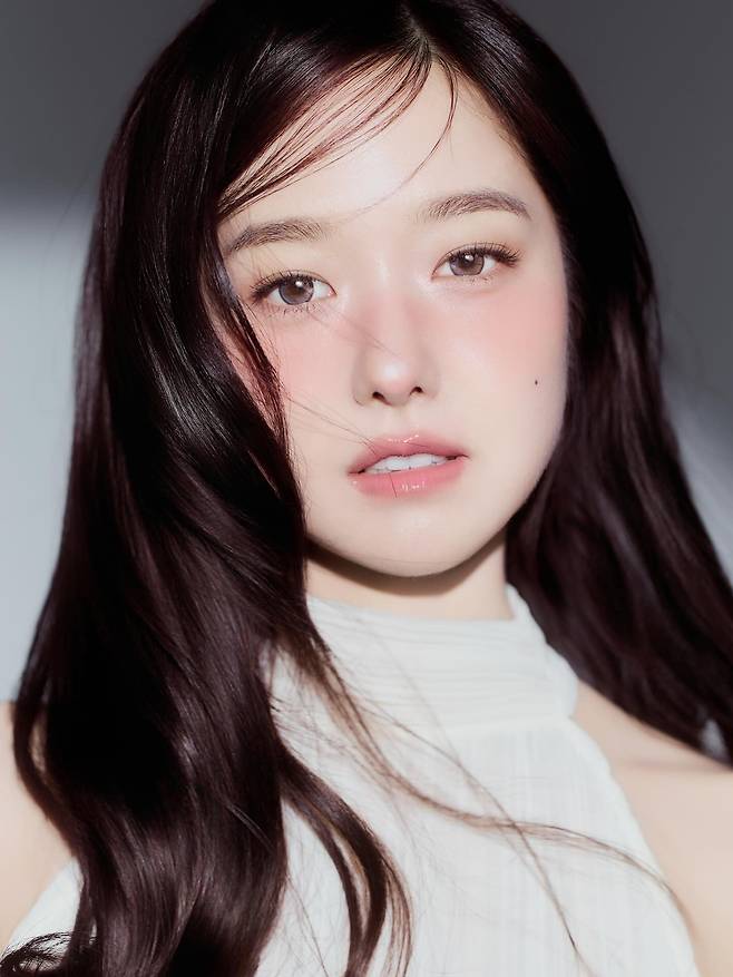 광택감 있는 피부 표현과 은은한 핑크 블러셔가 맑고 투명한 인상을 완성했죠.
