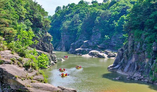 시원하게 쏟아지는 급류를 타고 내려가다 보면, 양옆으로 펼쳐진 협곡과 기암절벽이 마치 ‘한국의 그랜드 캐니언’ 같은 풍경을 선사해요. 코스 중간에는 장쾌한 구룡폭포, 직탕폭포, 승일교, 순담계곡 등 다양한 볼거리도 있어 수상 액티비티와 더불어 멋진 경관까지 함께 즐길 수 있습니다.