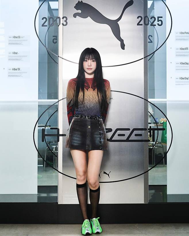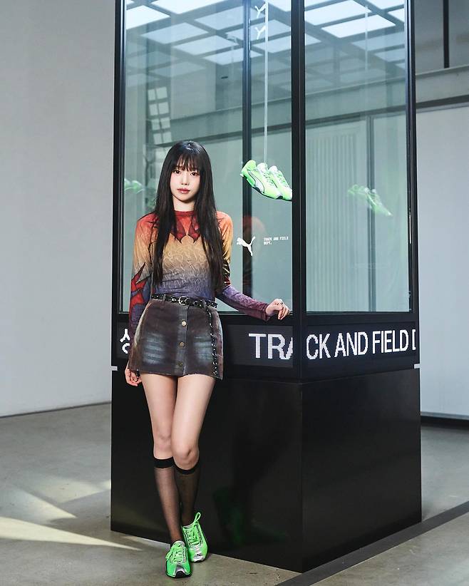 체인 벨트로 포인트를 더하면서 조유리 특유의 힙한 감각이 살아나요.
