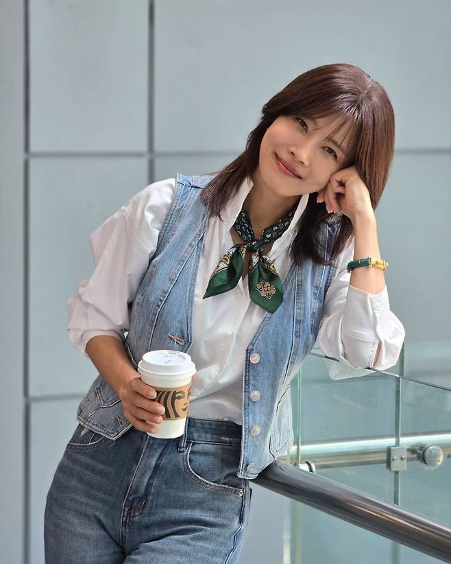 자연스럽게 풀어낸 긴 생머리와 내추럴한 메이크업이 전체 룩의 분위기를 깔끔하게 정돈해주네요.
