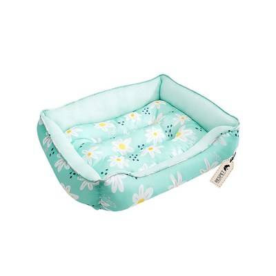 통풍이 잘 되는 원단으로 시원한 강아지 쿨방석이에요. 적당히 도톰한데 높이가 낮아요. 그래서 딱딱한 바닥을 싫어하는 강아지와 관절이 안 좋은 강아지 모두 사용하기 좋답니다. 베개 부분도 있어 머리를 기대고 자기도 좋아요.