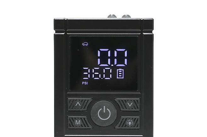 픽스 무선 전동 에어펌프 점프스타터 XAP-701의 컨트롤부 가운데 있는 전원 버튼을 2초 가량 길게 누르면 디스플레이와 함께 전원이 켜진다. 제일 위에는 현재 설정 모드가 표시되고, 제일 크게 표시되는 숫자는 현재 측정된 공기압이다. 바로 아랫줄에는 설정 공기압이 함께 표시되기 때문에 쉽게 상태를 확인할 수 있다. 모드는 자동차와 오토바이, 자전거, 공 모드가 지원되며, 각각의 유형에 최적의 공기압이 기본 설정되어 있다. 이외에도 커스텀 모드가 있어서 자주 사용하는 공기압을 지정해서 쓸 수도 있다.