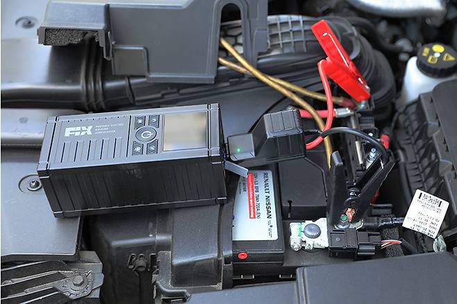 본체에 점프 케이블을 연결하면 다음과 같은 모습이 된다.