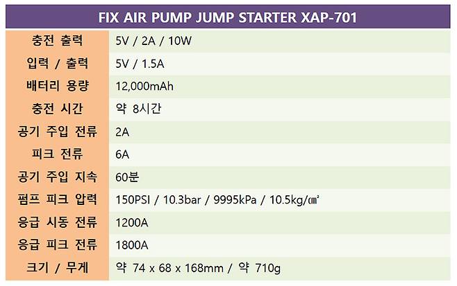 픽스 무선 전동 에어펌프 점프스타터 XAP-701