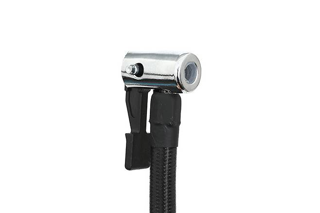 제일 아래에는 설정된 단위가 표시된다. 공기압 단위는 PSI와 bar, kPa, kg/㎠가 지원되어 공기압을 주입하려는 제품에 표기된 단위로 변환해서 쓸 수 있다. 공기압을 주입하기 전에 우선 호스를 본체에 연결해야 한다. 호스 연결은 나사 방식을 사용해 간편하면서도 단단하게 고졍된다.