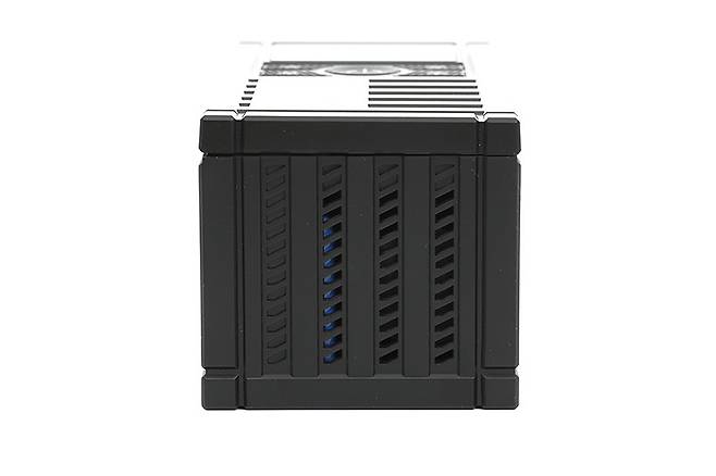 본체는 검은색 박스 타입으로, 위로 길쭉한 직육면체 표면에 많은 요철이 있어서 견고한 느낌을 전해주고 있다.