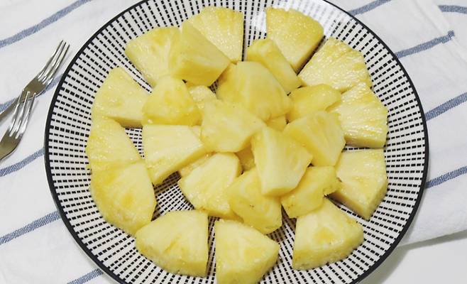 파인애플은 수분이 풍부하고 칼로리가 낮은 과일이에요. 100g에 약 50kcal 정도밖에 되지 않는데, 달콤한 맛 덕분에 만족감은 과자나 빵 못지않아요. 또 식이섬유가 풍부해 포만감을 오래 유지시켜 주니 자꾸 무언가 먹고 싶어지는 마음을 잡아줄 수 있어요.