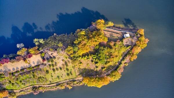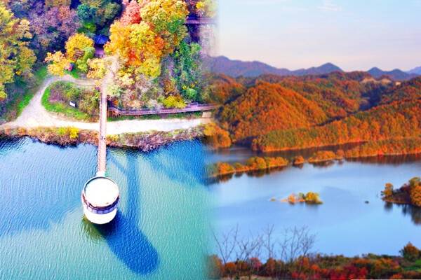 가을을 맞이하는 병풍 같은 바위산은 호수 위에 떠 있어, 그 광활한 풍경으로 최고의 여행지로 꼽힌다.