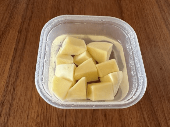 적당히 한입에 들어갈 만한 크기로 잘라야 바삭한 겉면과 부드러운 속살을 동시에 잡을 수 있다. 감자는 물에 잠깐 담가 전분기를 살짝 제거한 후 데쳐주는 과정도 중요하다. 그래야 튀김처럼 겉은 바삭하고 속은 촉촉한 상태로 완성된다.