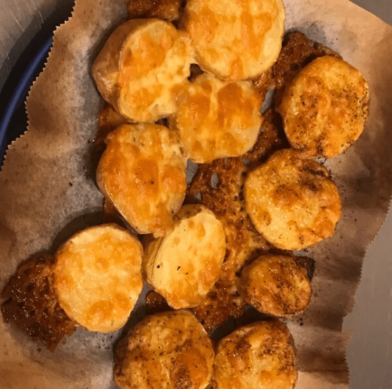 대략 15분 정도 조리하면 바깥은 바삭하고 속은 쫀득한 이상적인 감자요리가 완성된다. 프라이팬에 일정한 간격으로 배치해줘야 겹치지 않고 골고루 익는다. 감자 겉면이 갈색빛을 띠기 시작할 때가 가장 맛있는 타이밍이다.