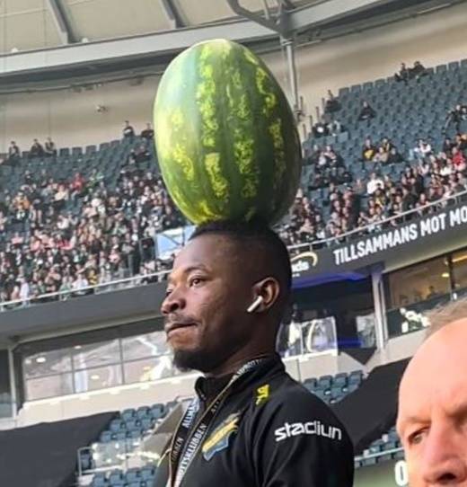 특히 이날 경기가 열린 홈구장인 스톡홀름의 프렌즈 아레나에는 무려 4만명이 넘는 관중이 입장했다. 팀이 2골을 넣었기에 팬들의 함성이 떠나갈 듯 했지만 프림퐁은 전혀 문제가 없었다. 수박은 경기가 끝날때까지 그의 머리 위에서 그대로 남아 있었다.