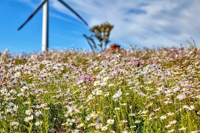 풍력 발전소와 구절초가 어우러지는 풍경이 절묘하여, 그 자체만으로도 이국적인 가을 풍경을 선사하는 감악산은 올 가을 가장 화제되는 포토스팟 중 하나다.