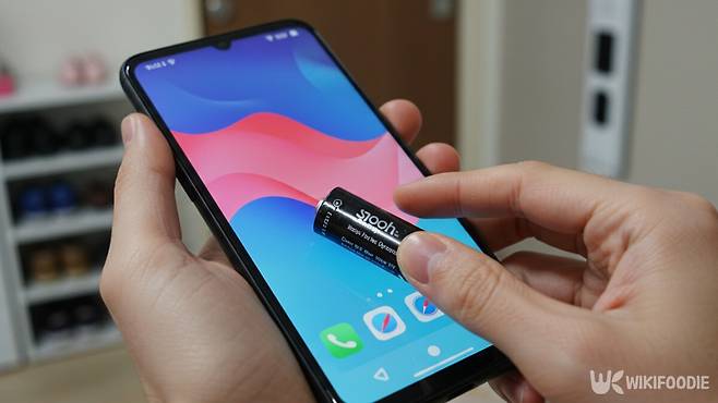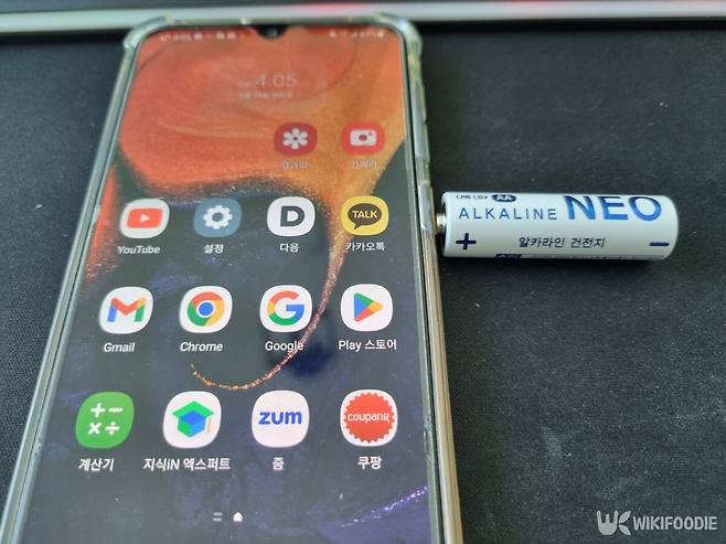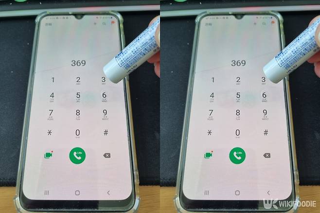 가장 빠르고 직관적인 방법이다. 건전지의 +극(돌출된 면)으로 스마트폰의 숫자 키패드를 가볍게 눌러보면 된다.