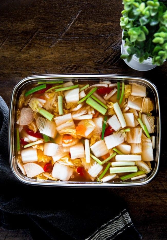완성된 나박김치는 냉장 보관 시 2~3주까지 맛있게 즐길 수 있다. 시간이 지날수록 새콤한 맛이 강해지고 무가 무르기 때문에, 신선하고 아삭할 때 먹는 것이 가장 좋다. 꺼낼 때는 항상 깨끗한 국자를 사용해야 오래도록 신선하게 유지할 수 있다.