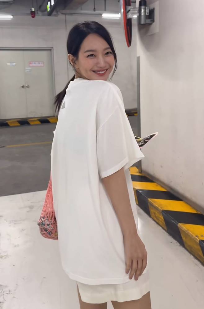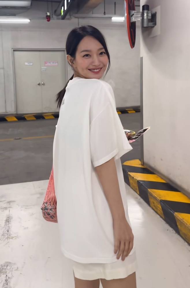 신민아는 긴 생머리를 뒤로 모아 하나로 묶은 로우 포니테일 스타일로 편안하고 데일리한 룩을 연출했습니다.