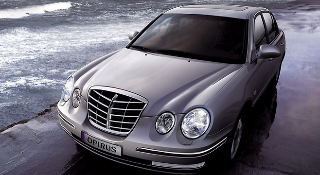 2003년 등장한 오피러스는 태생부터 독특했다. 본래 현대자동차가 개발하던 프로젝트를 기아가 넘겨받아 완성한 모델이었기 때문이다. 그랜저 XG 플랫폼을 기반으로 한 전륜구동 대형 세단이었으며, 이는 기존 기아 대형차들이 주로 후륜구동을 사용해왔던 점과는 차별화된 선택이었다. 차명 ‘오피러스(Opirus)’는 라틴어 ‘황금의 땅’을 의미하며, 기아는 이를 ‘의견 주도층(Opinion Leader Of Us)’이라는 의미로 설명했다.
