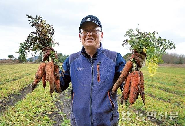 농장의 대표 작물은 여름에 파종해 겨울에 수확하는 구좌 당근이다.