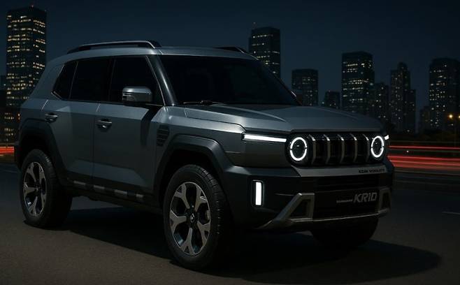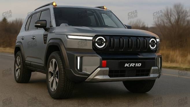 지난 2023년 서울모빌리티쇼에서 목업 모델이 최초 공개된 이후, 국내외 자동차 마니아들 사이에서는 폭발적인 반응이 이어지고 있습니다. 특히 오프로드 주행의 진정한 즐거움을 아는 이들에게 KGM 쌍용 KR10은 단순한 SUV를 넘어선 ‘기대작’으로 자리매김했습니다. CHAFREAK라는 온라인 커뮤니티에서 공개된 예상도를 통해 엿볼 수 있는 KR10의 외관은 정통 SUV의 카리스마를 여과 없이 뿜어내고 있습니다. 전통적인 박스형 차체에 더해진 원형 LED 헤드램프와 DRL, 버티컬 라디에이터 그릴, 그리고 터프한 범퍼는 전면부에서부터 압도적인 존재감을 드러냅니다. 이는 과거 뉴코란도의 강인함을 현대적인 감각으로 재해석한 결과입니다.