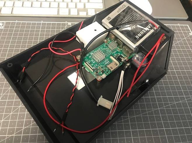 라즈베리 파이를 위치 시켜주고 3.5파이 오디오 잭도 만들어 끼워줍니다.