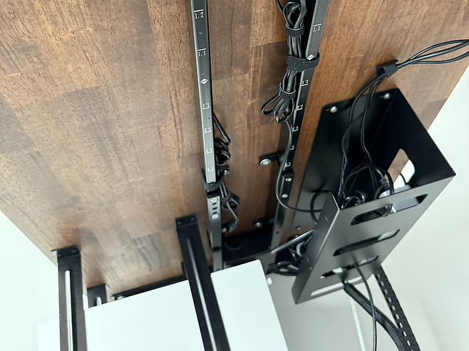 케이블 정리를 위한 구조도 잘 되어 있어 책상 아래가 깔끔하게 유지됩니다.
