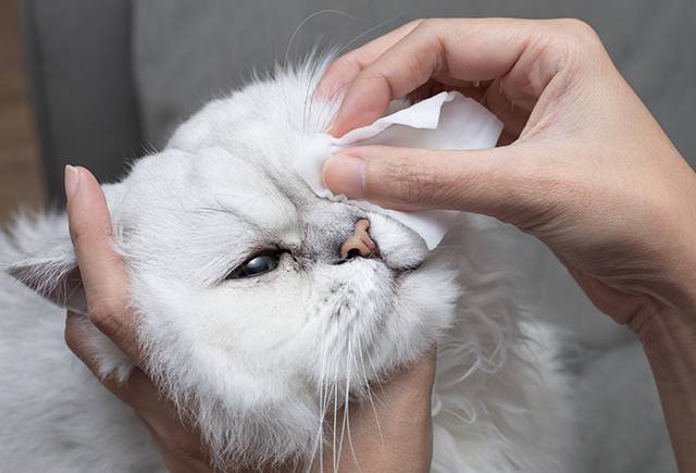 분비물이 나오거나 얇은 막이 덮여 있는지, 동공의 크기나 움직임도 좌우가 맞는지 매일 체크한다. 이때 고양이 눈에 직접 빛을 비추는 방법은 피해야 하며 시선은 장난감 등으로 유도한다.