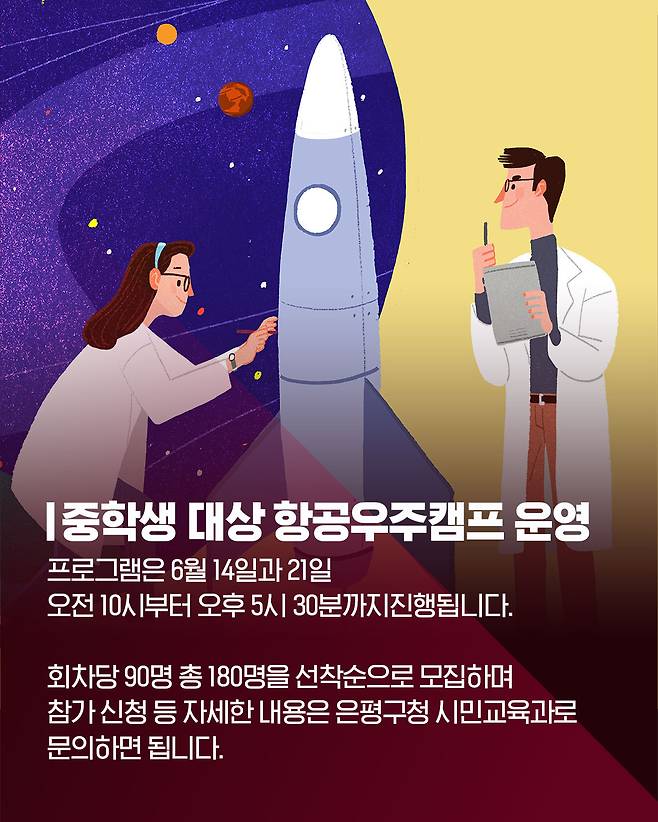 은평구가 중학생을 대상으로 항공우주캠프를 운영합니다.