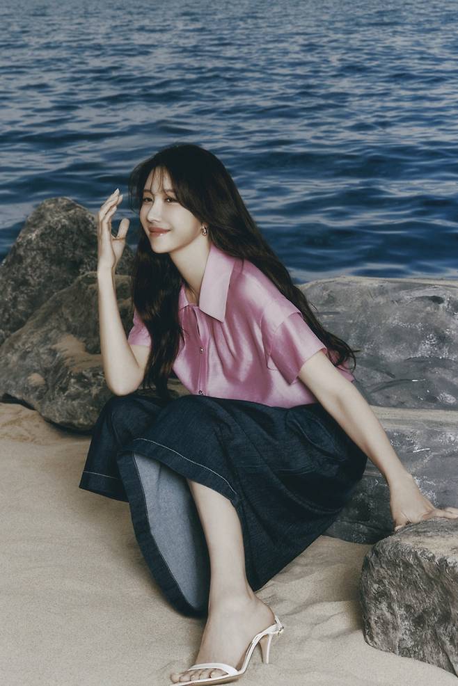 이지아는 여성복 브랜드 올리비아로렌과 함께한 2025년 여름 컬렉션 화보에서 감각적인 여름 스타일을 선보였다.