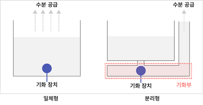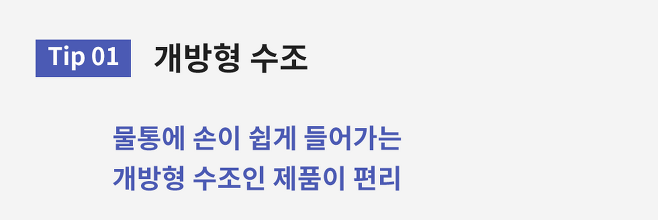 반면, 일체형 제품은 수조만 세척하면 되기 때문에 좀 더 편리한 관리가 가능합니다.