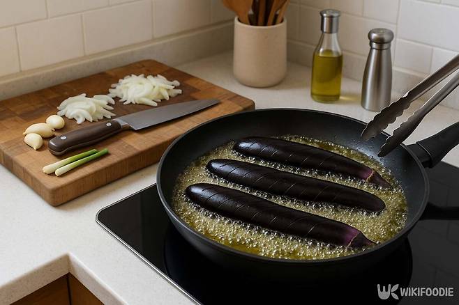 스크램블은 약불에서 천천히 익히면 식감이 부드럽다. 소스는 졸이듯 끓여야 가지에 잘 스며든다. 실파는 먹기 직전에 올리면 향이 더 살아난다. 가지는 기름을 빠르게 흡수하므로 팬이 충분히 달궈졌을 때만 굽는다.