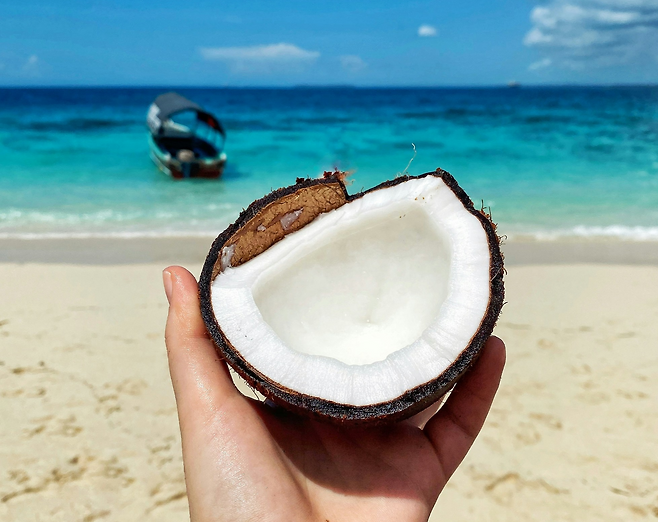 하루가 다르게 더워지는 한낮 날씨가 계절이 흐르고 있음을 느끼게 해줍니다. 코코넛은 동남아 여행을 떠올리게 하는 이국적인 과일입니다. 코코넛워터, 코코넛밀크, 코코넛오일, 코코넛 칩, 코코넛 파우더 등 활용도가 무궁무진해 관심을 끄는 과일입니다.
