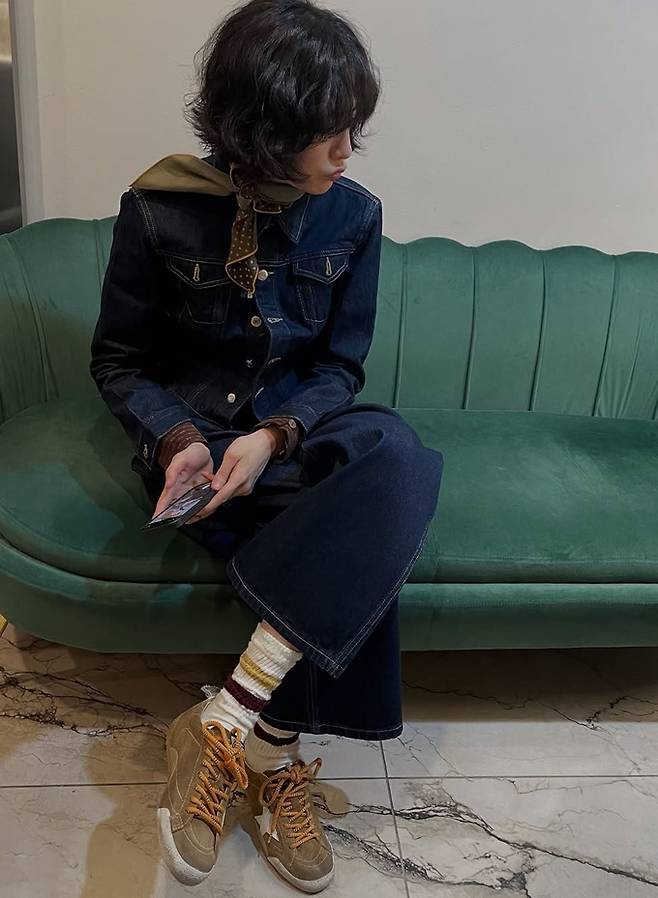 공개한 사진에서 나나는 숏컷 웨이브 스타일에 다크 네이비의 데님 팬츠와 데님 셔켓의 청청 패션으로 슬림하면서도 멋스러운 봄 데님 핏을 완성했다.