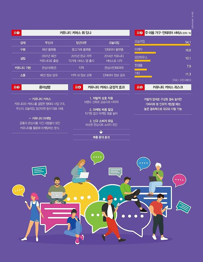 패션 플랫폼 무신사, 인테리어 플랫폼 오늘의집, 중고거래앱 당근마켓. 이들은 최근 몇년 사이 급성장하며 존재감을 알렸다는 점 외에도 한가지 공통점이 있다. 플랫폼 내 커뮤니티 공간이 따로 있다는 점이다. 그 공간에선 소비자 간 소통이 활발하게 이뤄지고 있다.