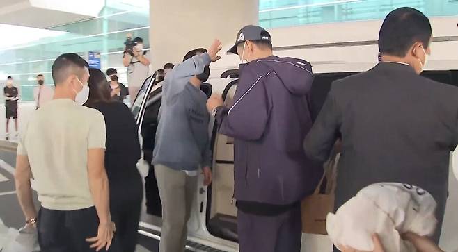 그 과정에서 한 기자가 차량 안을 찍으려 했고, 경호팀이 제지했다.
